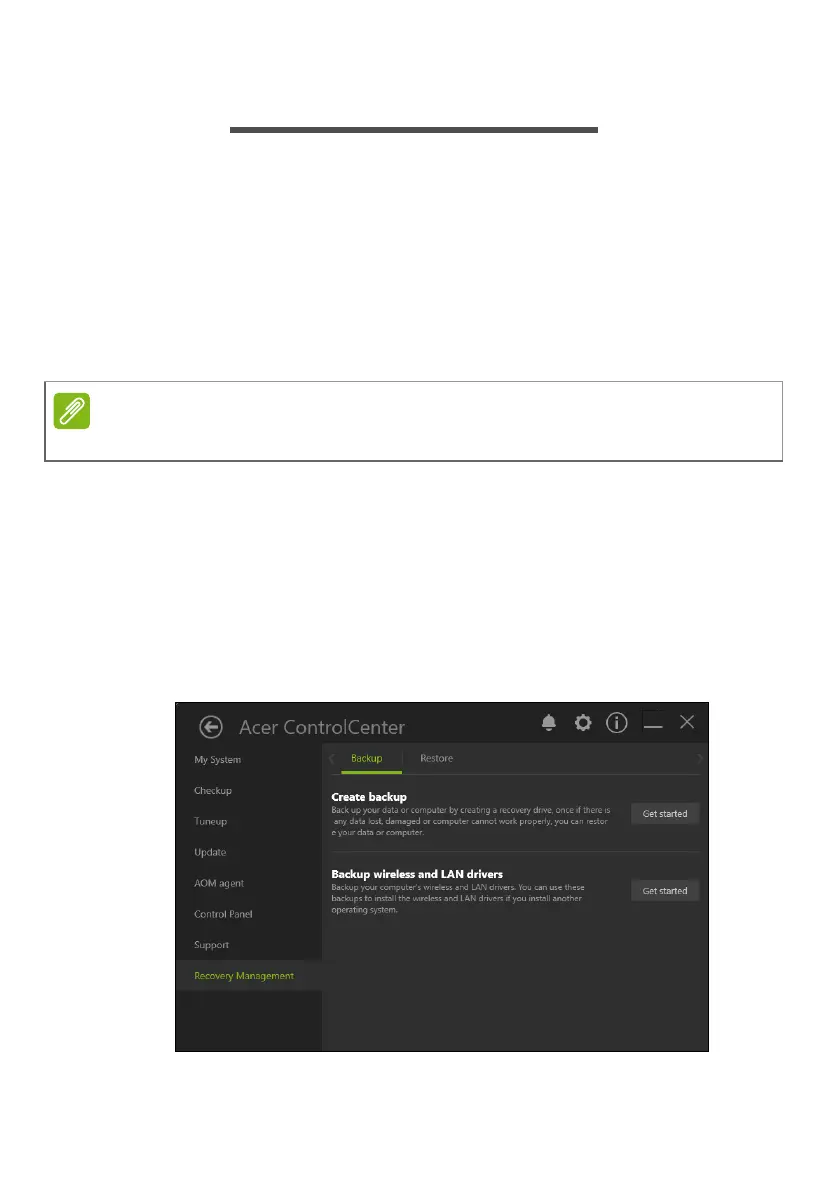 Acer provides Acer ControlCenter, which allows you to reset your PC,