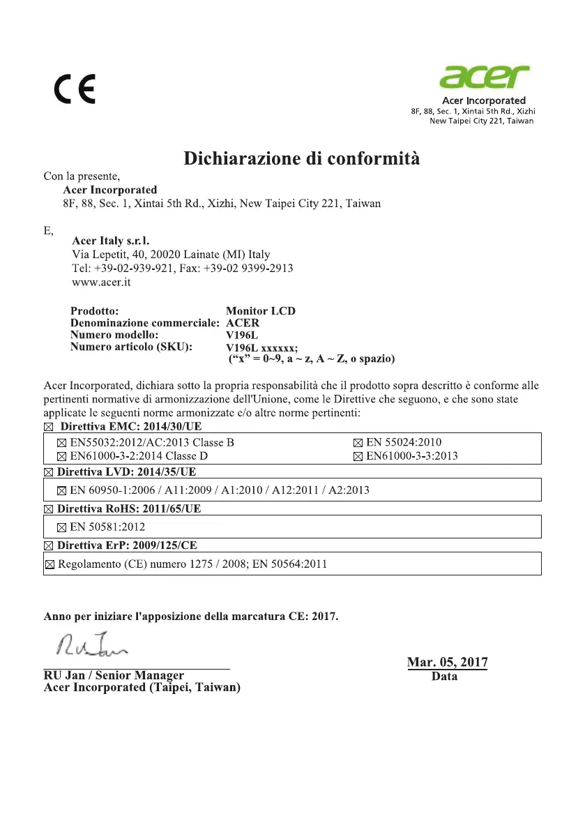 Bekijk gratis de handleiding van Acer V196LB, stel vragen en lees de antwoorden op veelvoorkomende problemen, of gebruik onze assistent om sneller informatie in de handleiding te vinden of uitleg te krijgen over specifieke functies.