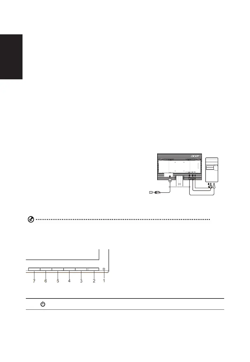 1&2 Strømknap Tænder og slukker for skærmen Blåt betyder, at der er tændt for