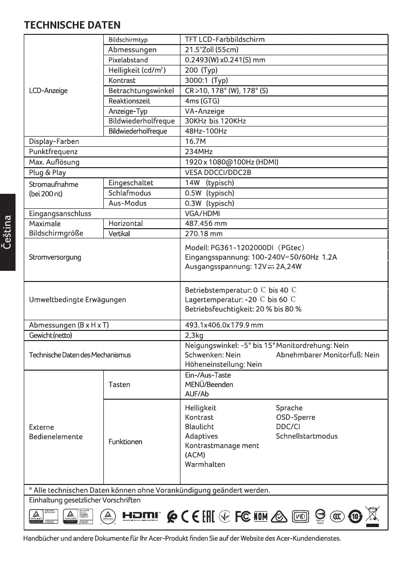 Bekijk gratis de handleiding van Acer V226HQLH, stel vragen en lees de antwoorden op veelvoorkomende problemen, of gebruik onze assistent om sneller informatie in de handleiding te vinden of uitleg te krijgen over specifieke functies.