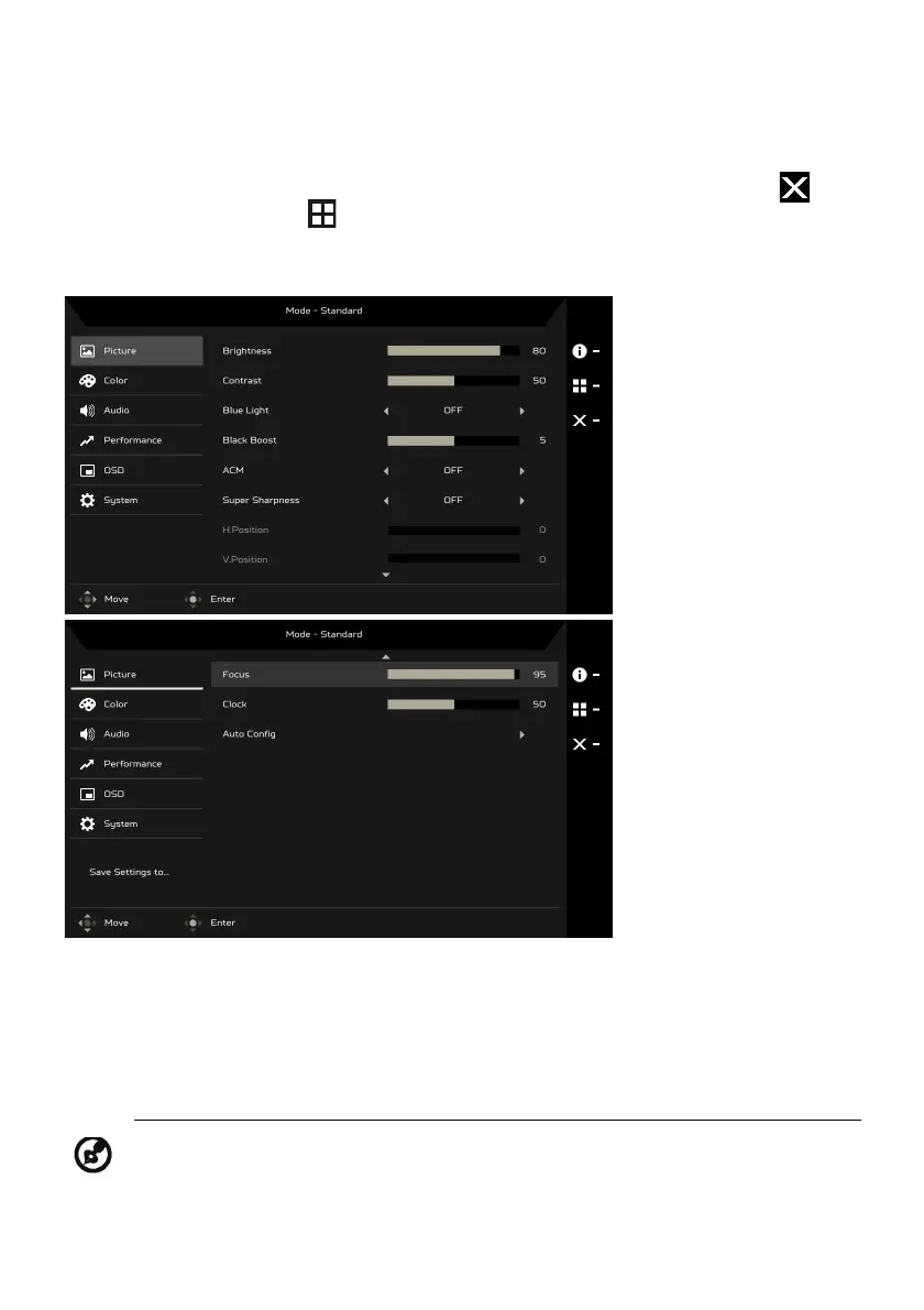 2. Using the Navi/OK button, select Picture from the OSD. Then navigate to