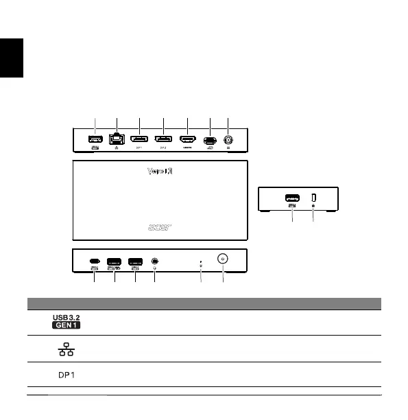 Dit deel beschrijft de poorten en aansluitingen van het Acer Vero MST Dock M33.