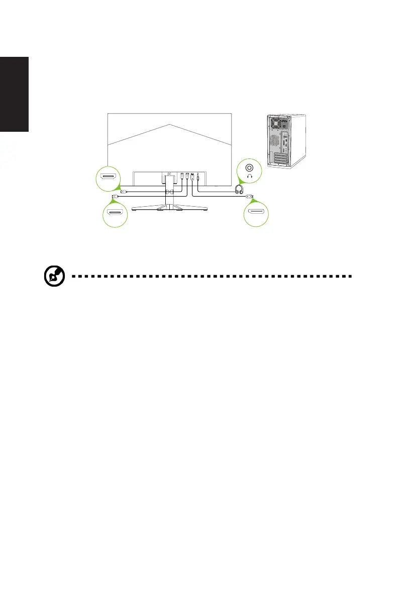 2. 將訊號線接至顯示器的 HDMI ( 選配 ) 和或 DP ( 選配 ) 輸入插槽,然後另一端接至電腦顯示卡的 HDMI ( 選配 ) 和