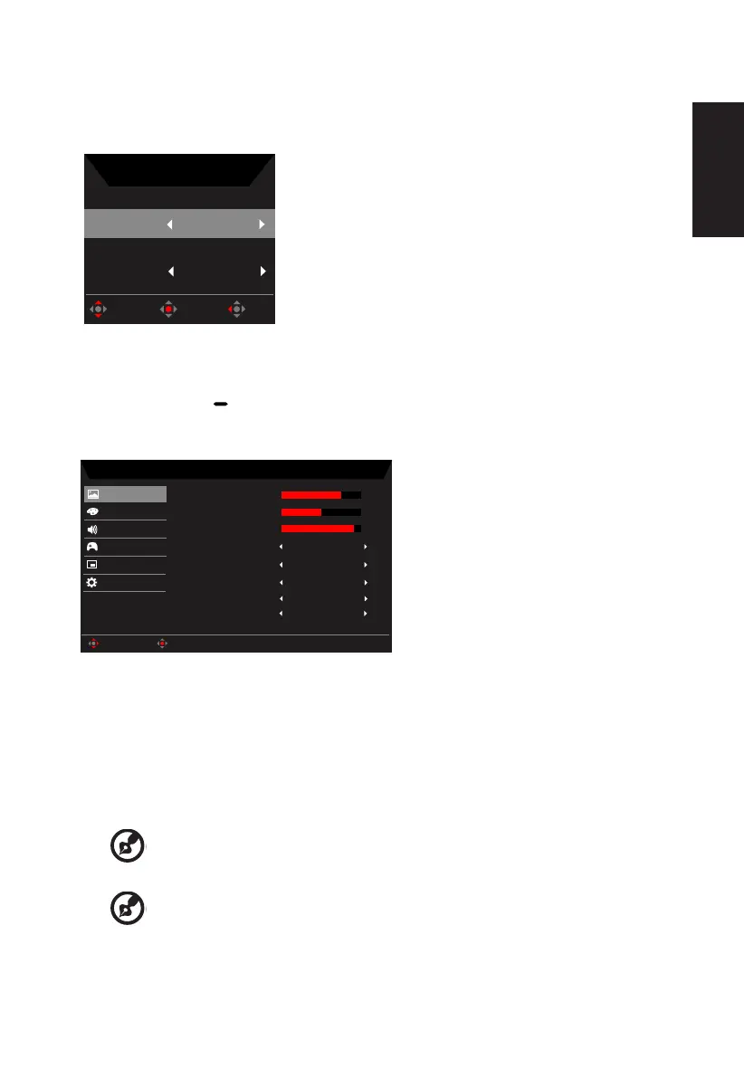 2. 向上或向下切換搖桿可從 OSD 選擇 Picture(影像),接著向右切換至 可導覽至您要調