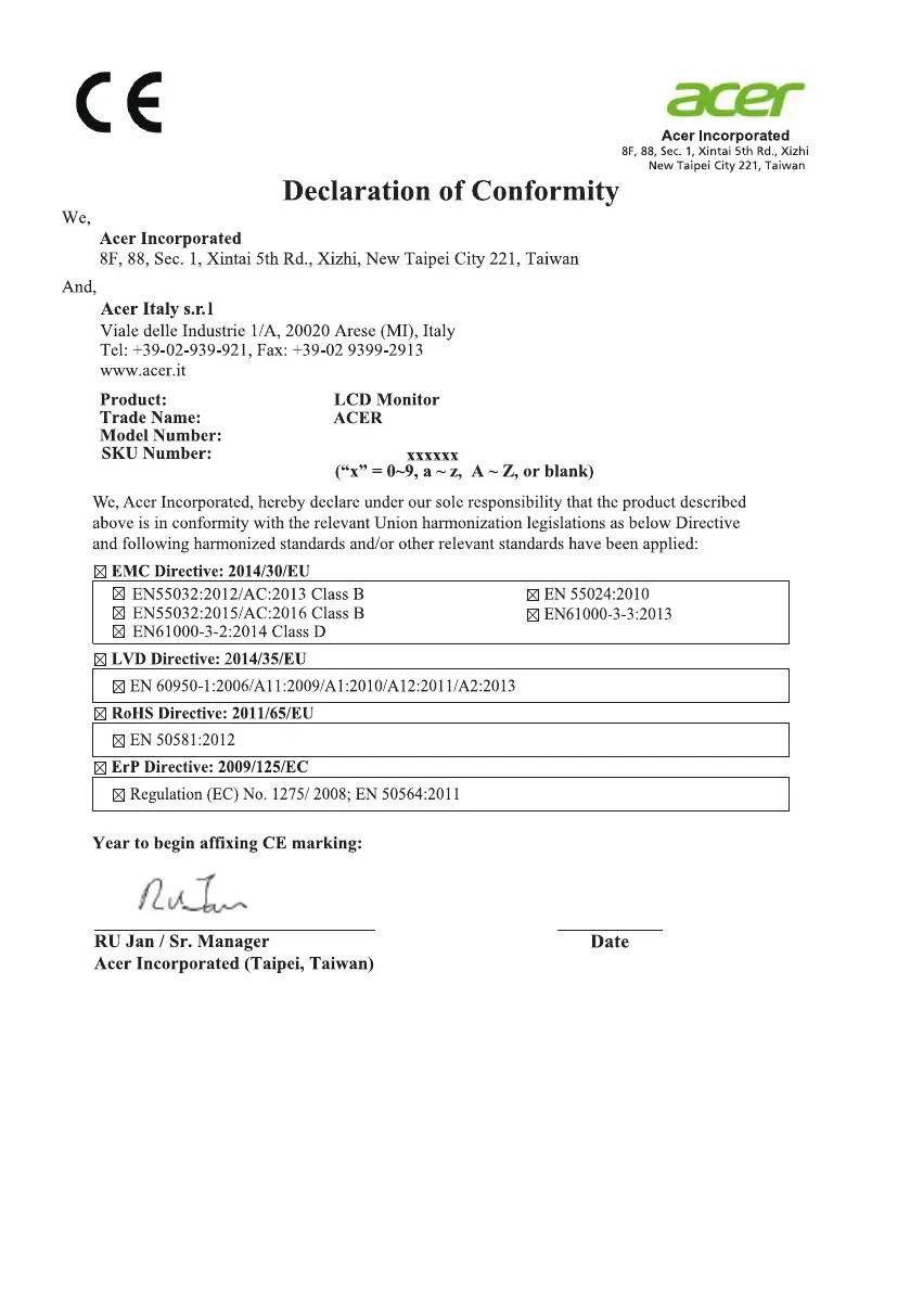 Bekijk gratis de handleiding van Acer VG252Q, stel vragen en lees de antwoorden op veelvoorkomende problemen, of gebruik onze assistent om sneller informatie in de handleiding te vinden of uitleg te krijgen over specifieke functies.