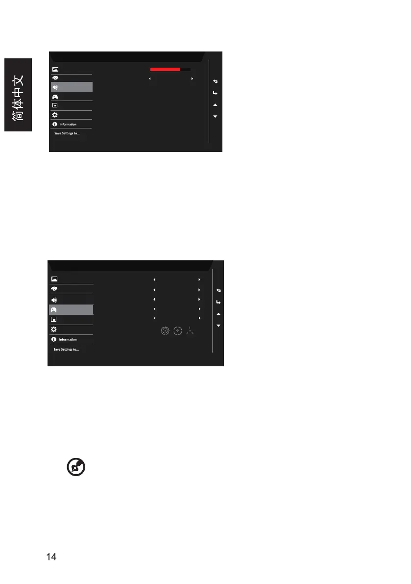 2. 向上或向下切换按钮以从 OSD 中选择 Audio(音频)。然后向右切换以 导航到想要