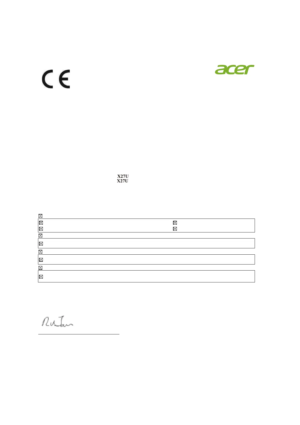 We, Acer Incorporated, hereby declare under our sole responsibility that the product described above is in