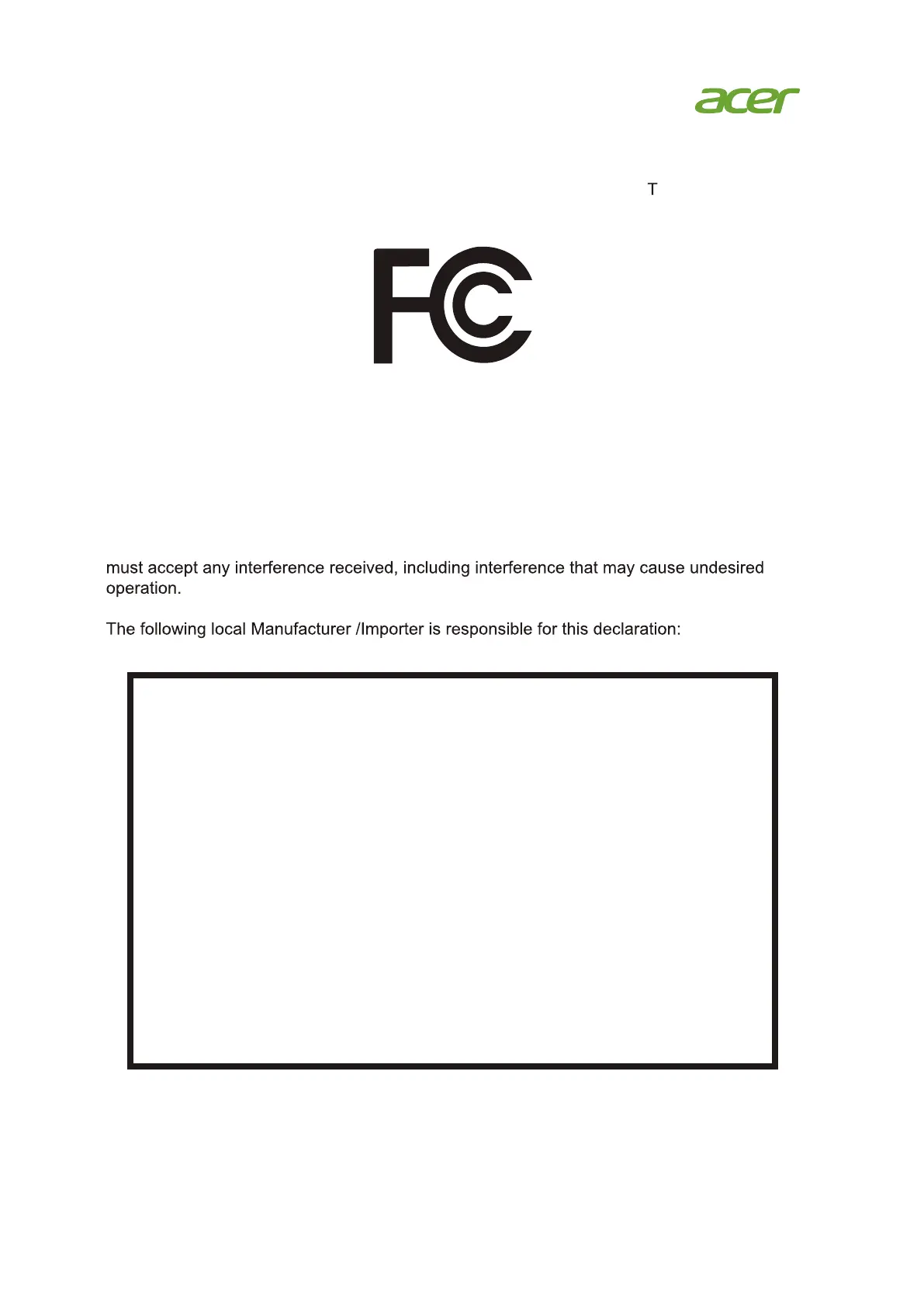 This device complies with Part 15 of the FCC Rules. Operation is subject to the following