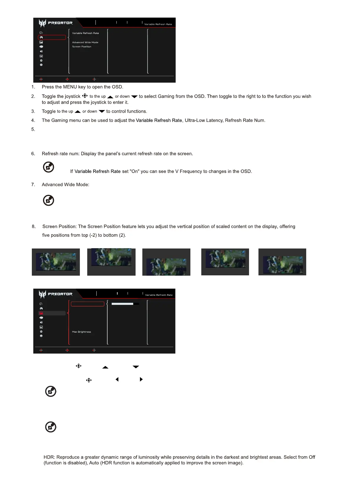 Screen Position = 0, Center Screen Position = 2, Top Screen Position = -2, Bottom