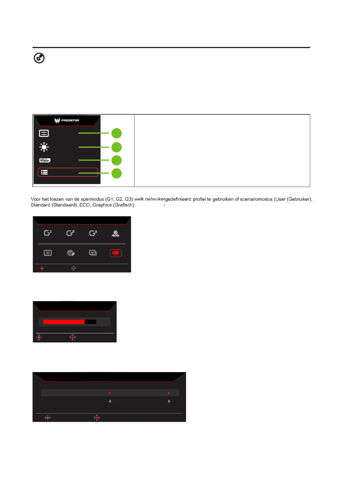 Het OSD (onscreen display) kan worden gebruikt voor het aanpassen van de instellingen van uw OLED-monitor. Druk op de knop om