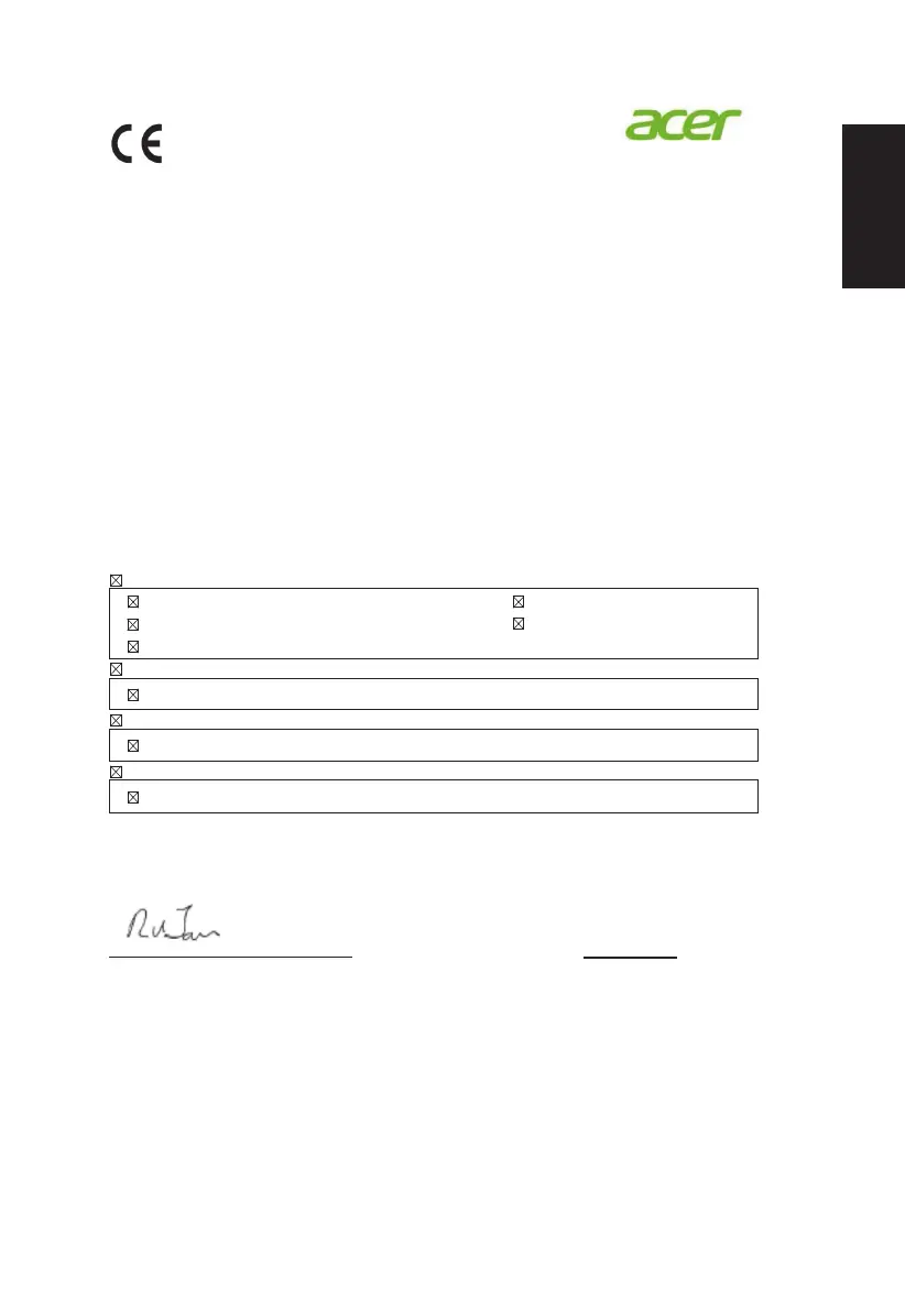 We, Acer Incorporated, hereby declare under our sole responsibility that the product described above is in