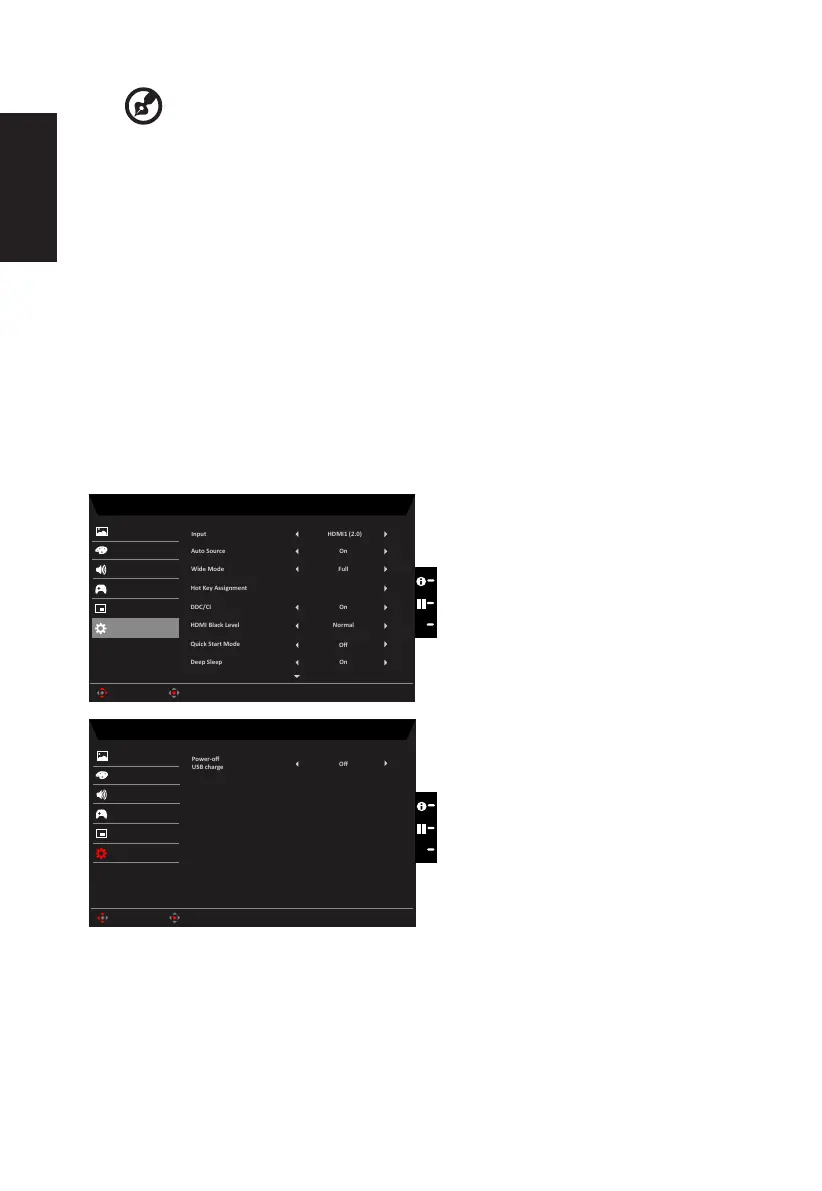 Assignment, DDC/CI, HDMI Black Level, Quick Start Mode, Deep Sleep.