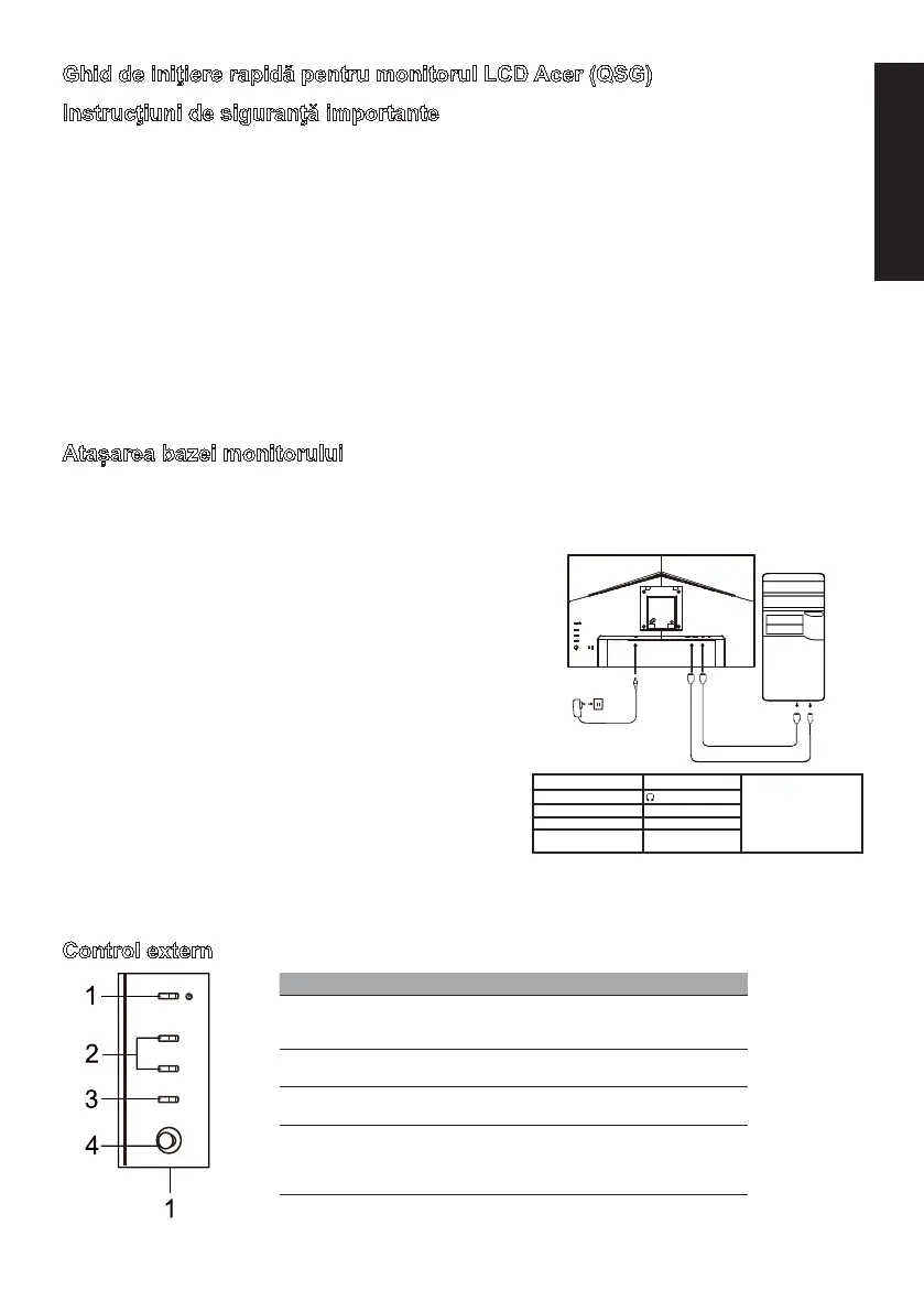 Ghid de iniţiere rapidă pentru monitorul LCD Acer (QSG)