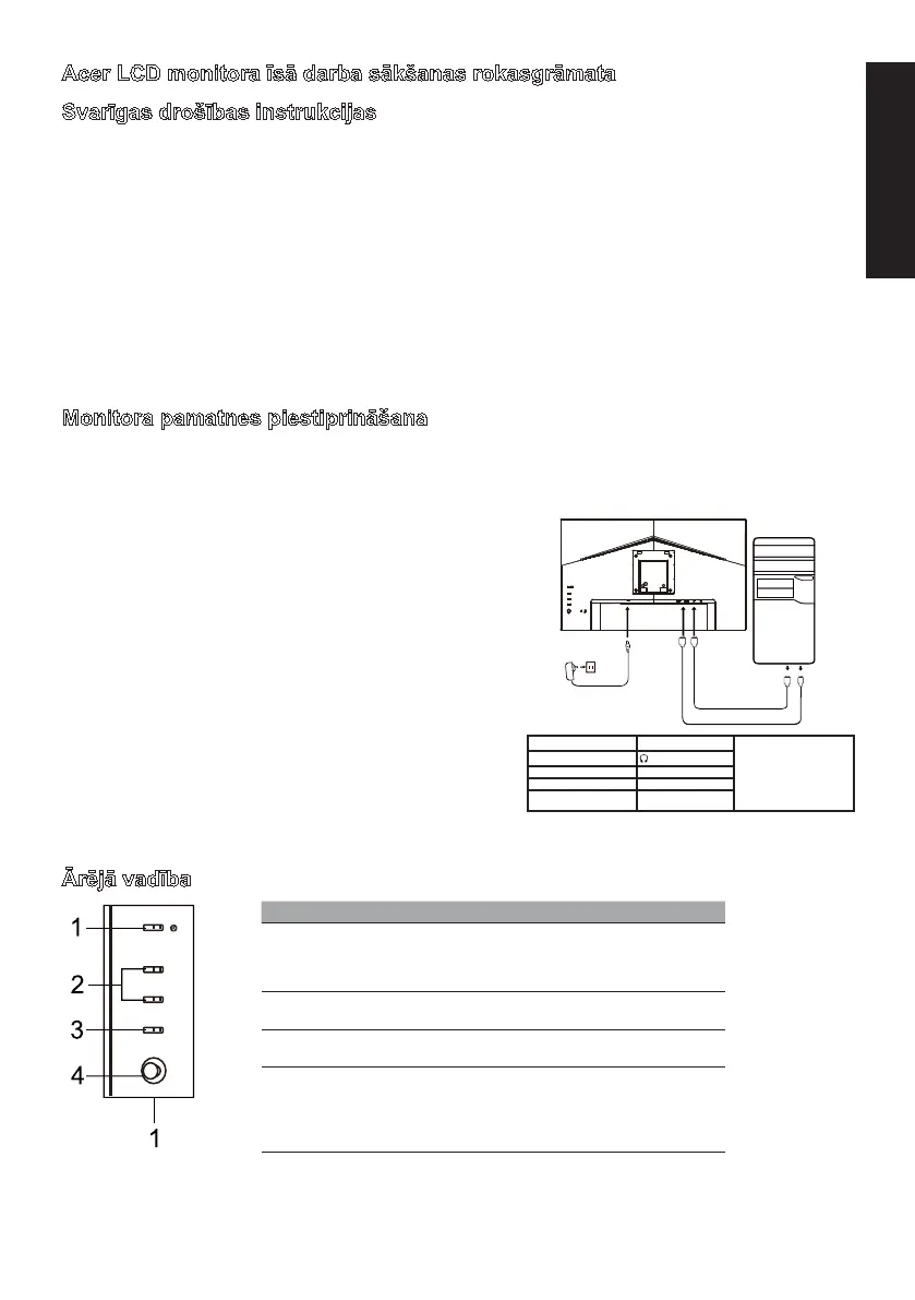 Acer LCD monitora īsā darba sākšanas rokasgrāmata