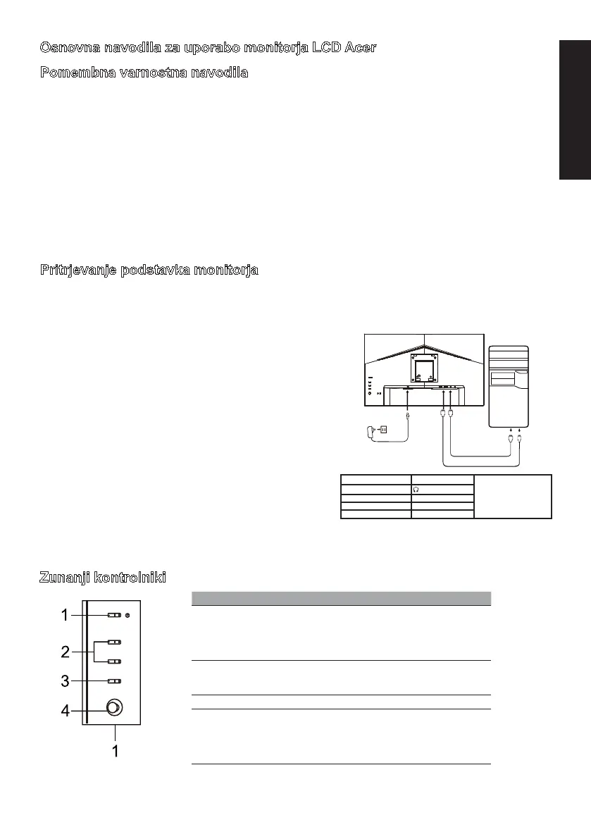 • Podjetje Acer ne odgovarja za poškodbe, nastale zaradi uporabe čistil na osnovi amoniaka ali alkohola.