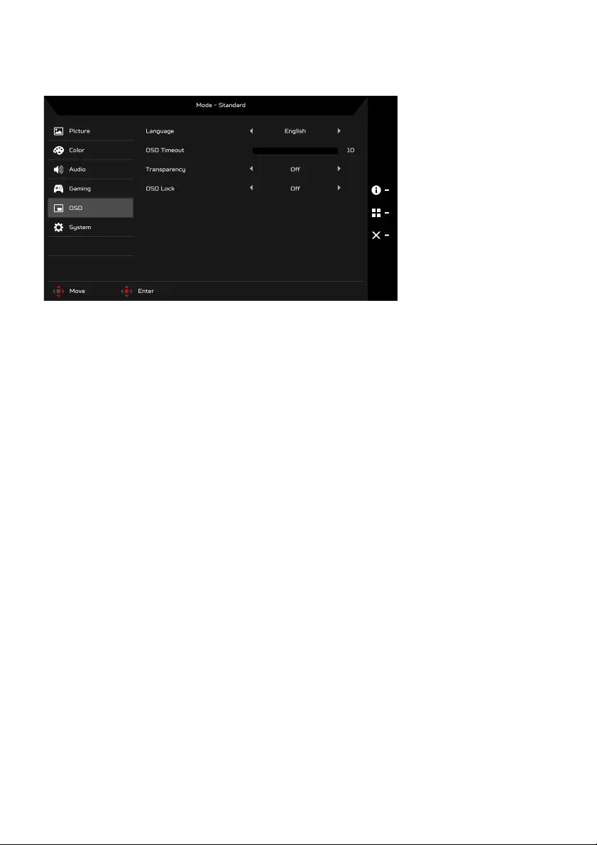 5. Time-out OSD: pas de vertraging aan voorafgaand aan het uitschakelen