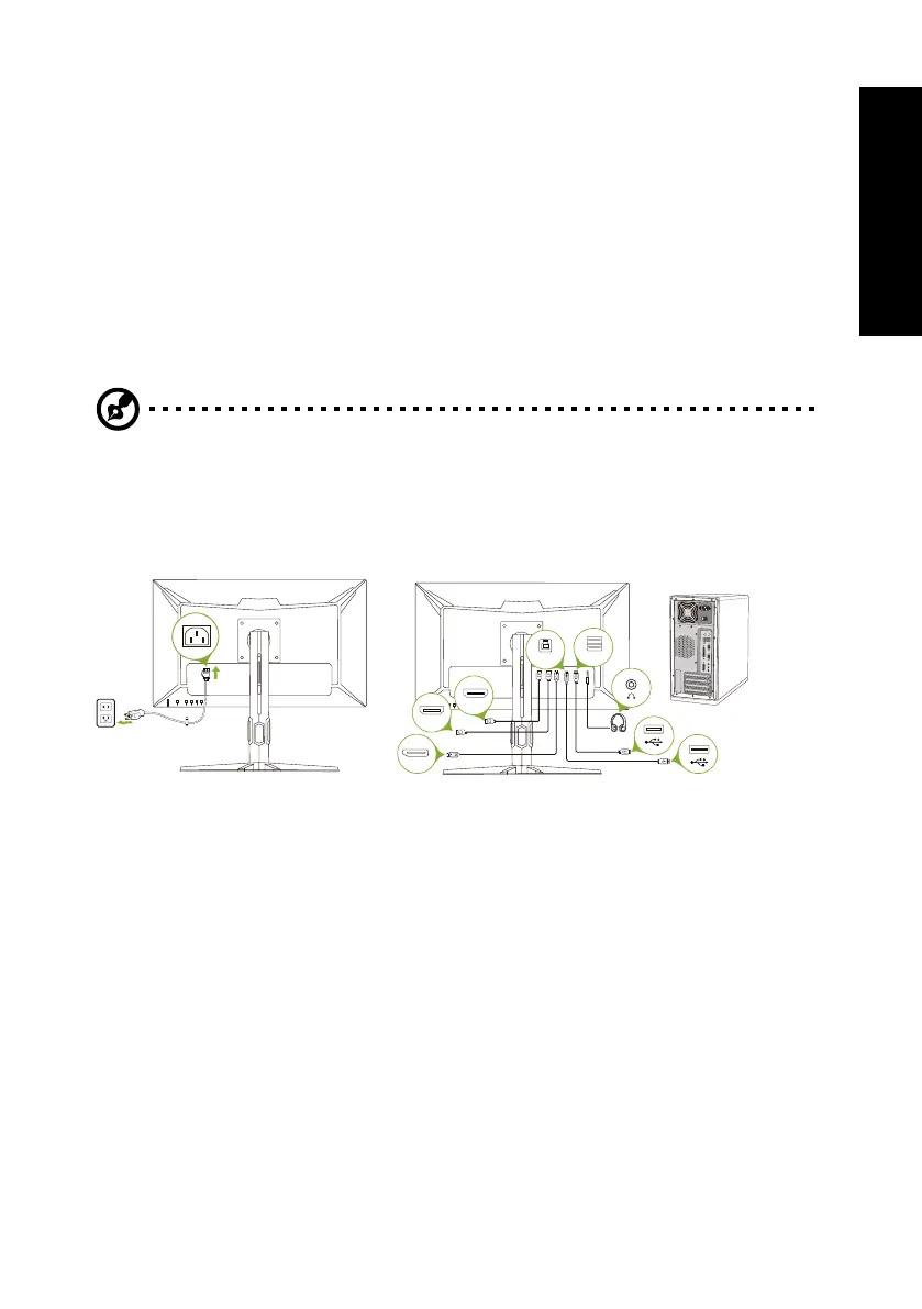 5. Sluit de netvoedingskabels van uw computer en van de monitor aan op een stopcontact in