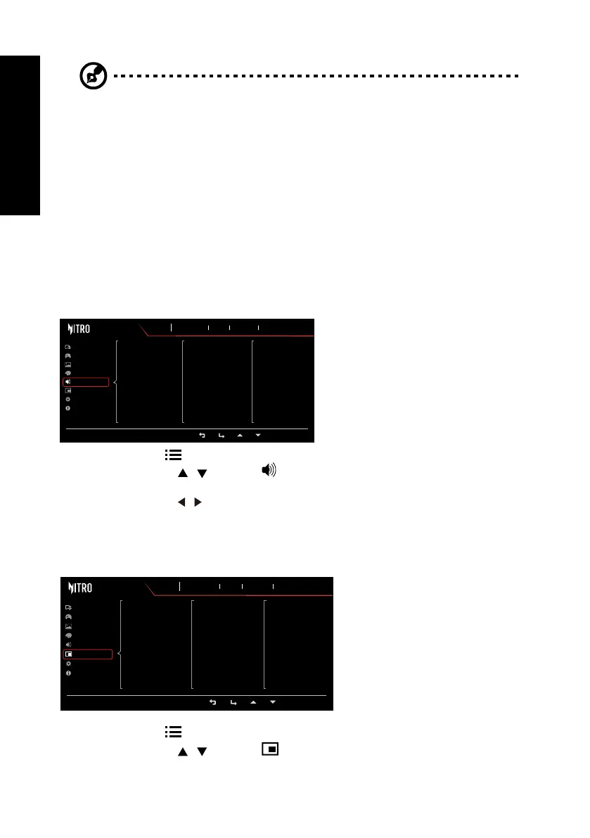 2. Gebruik de toetsen / , selecteer Audio in het OSD-menu. Navigeer vervolgens