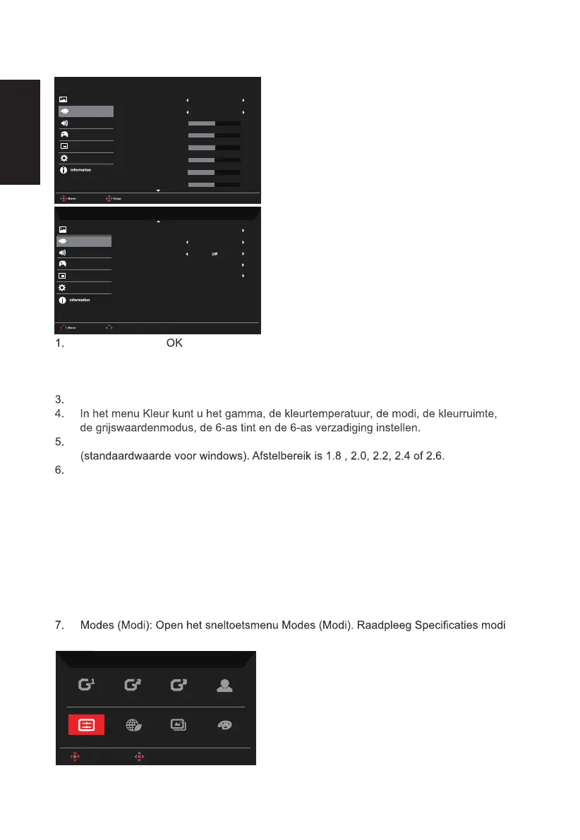 Met Gamma kunt u de helderheidstint aanpassen. De standaardwaarde is 2.2