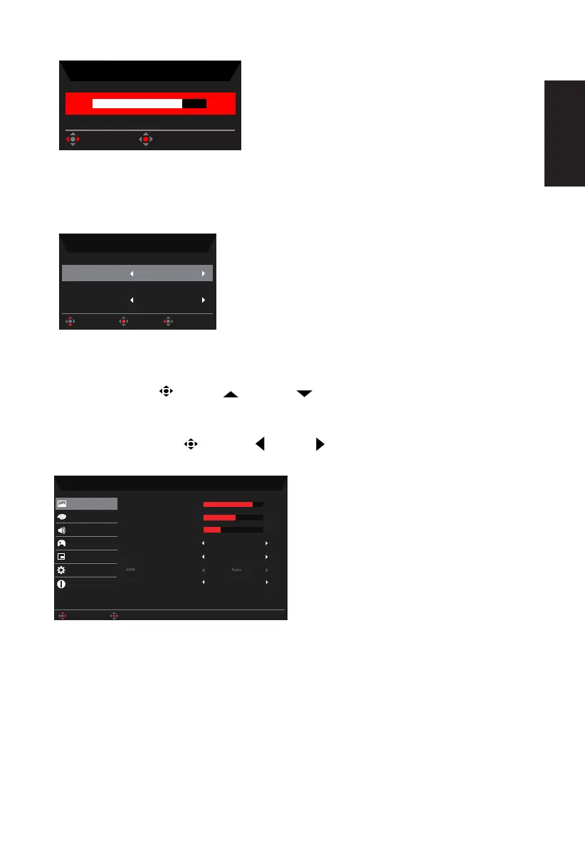 OSD. Zet de joystick naar rechts naar de functie die u wilt aanpassen en duw op de
