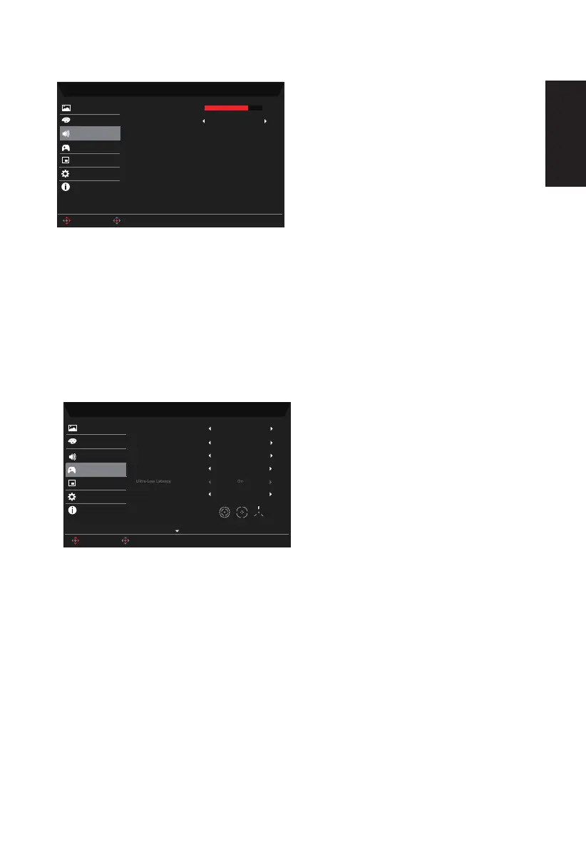 2. Beweeg de joystick omhoog of omlaag om Audio in het OSD te selecteren. Ga