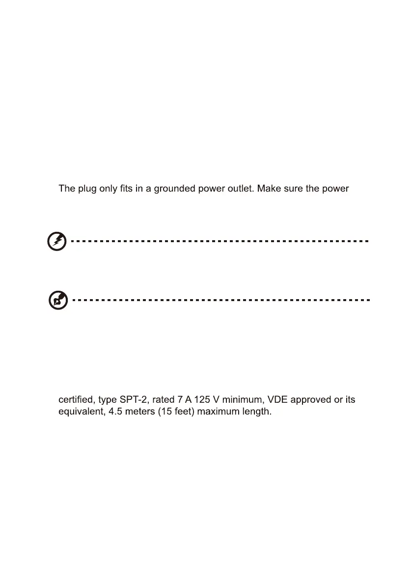 outlet is properly grounded before inserting the power cord plug. Do