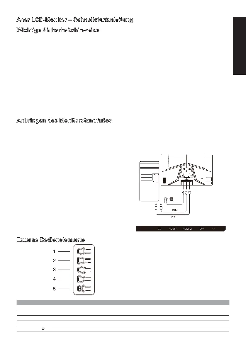 • Flüssigkeit darf niemals direkt oder indirekt auf den Bildschirm oder in das Monitorgehäuse gelangen.