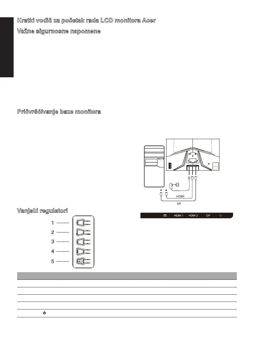 Kratki vodič za početak rada LCD monitora Acer