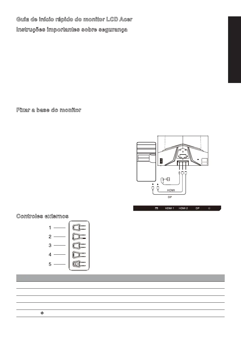 do monitor e a outra extremidade na porta HDMI/DP do seu