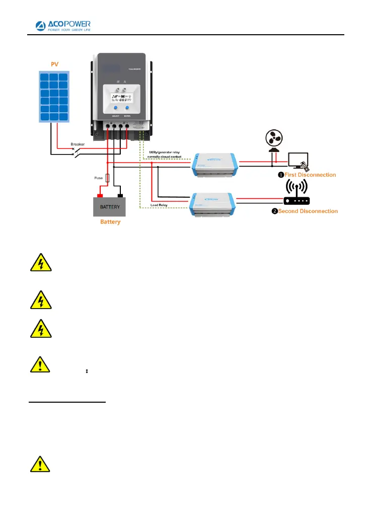 shock or injury. Make use of fuses/breaker or cover the entire solar array, prior to performing