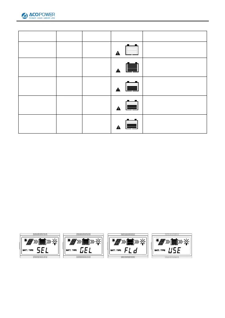 type setting. After choosing the battery type by pressing SELECT button, waiting for 5