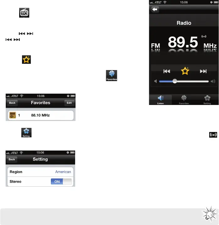 4. To listen to your Favorites stations, touch