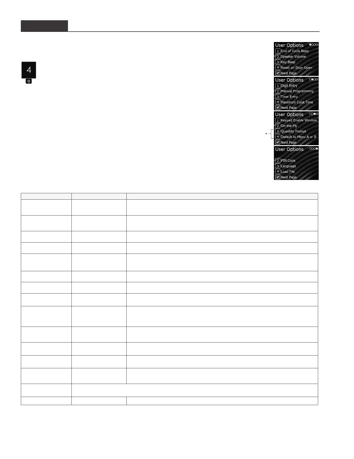 1. Press and hold keypad number “4”/ USER OPTIONS.