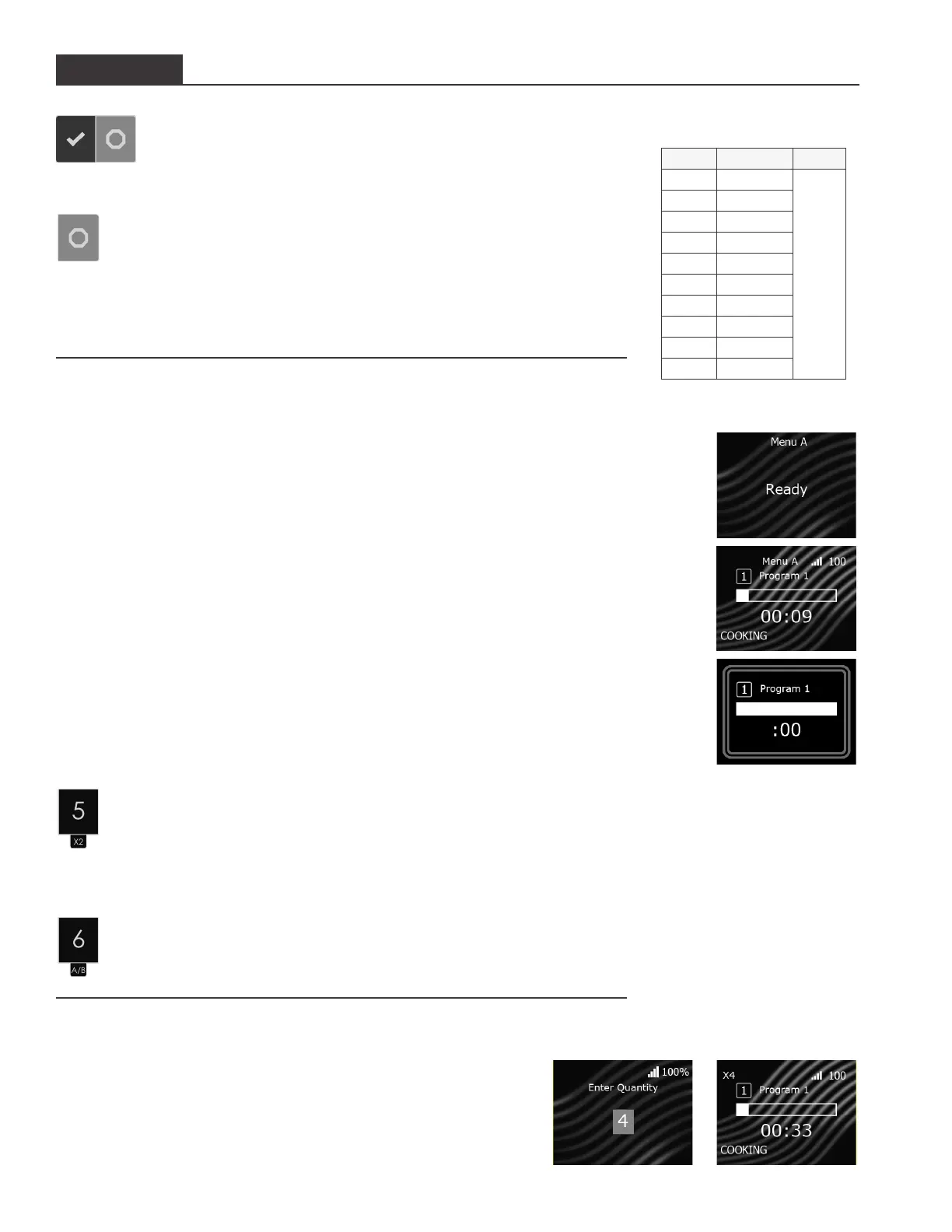 • Double Digit Keypad Cooking: press the two keypads, in order, of the double digit