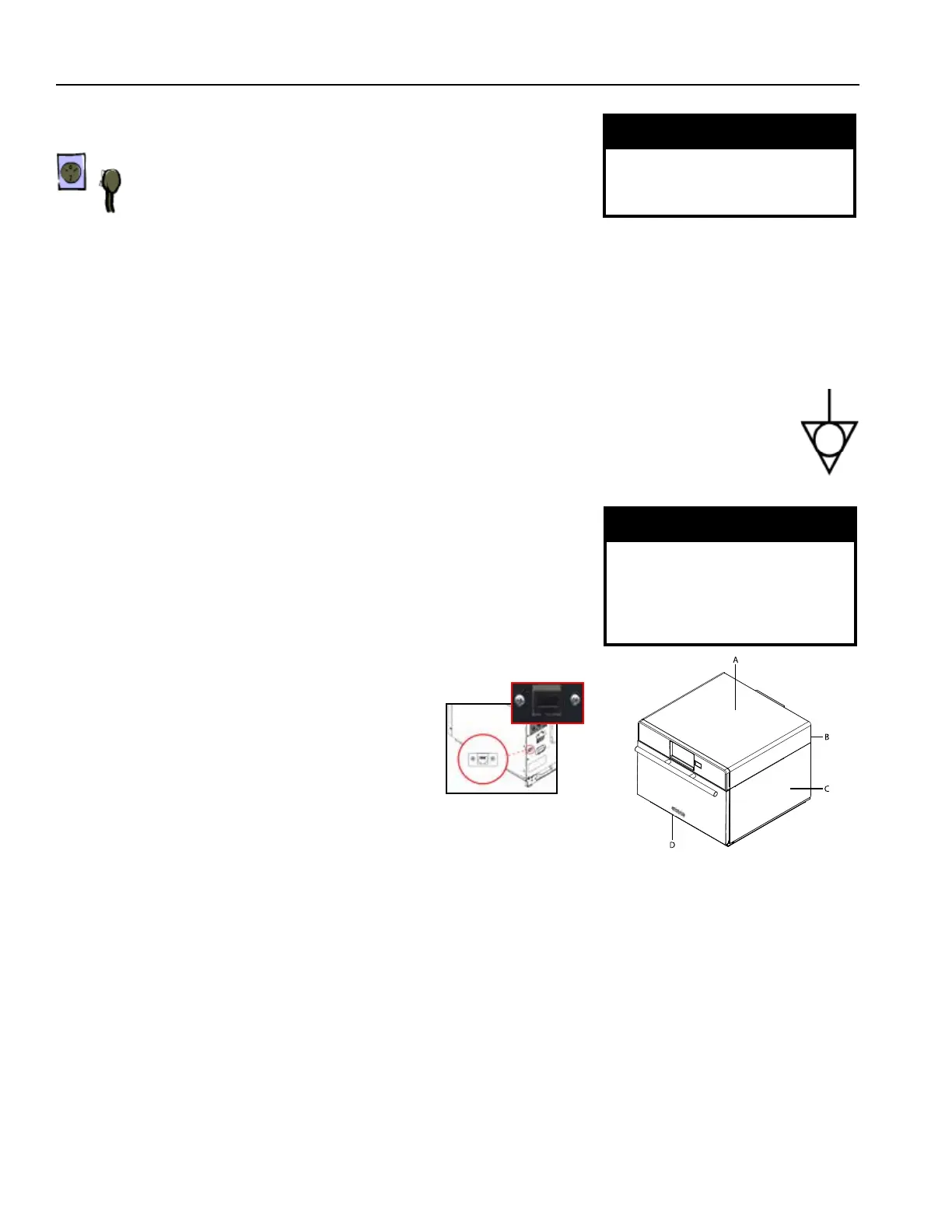 to earthing prong on plug� Located on outside of oven back, terminal is marked with symbol shown at right
