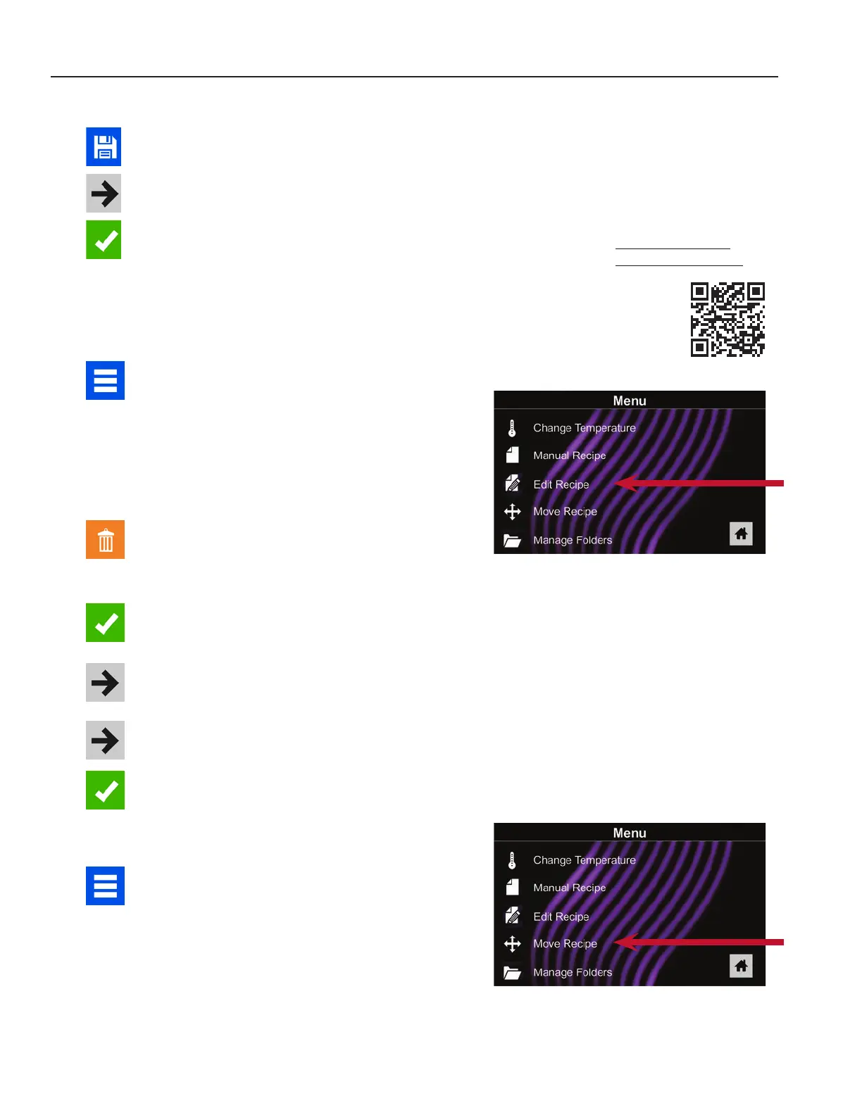3� Touch the desired recipe to be edited� The control will