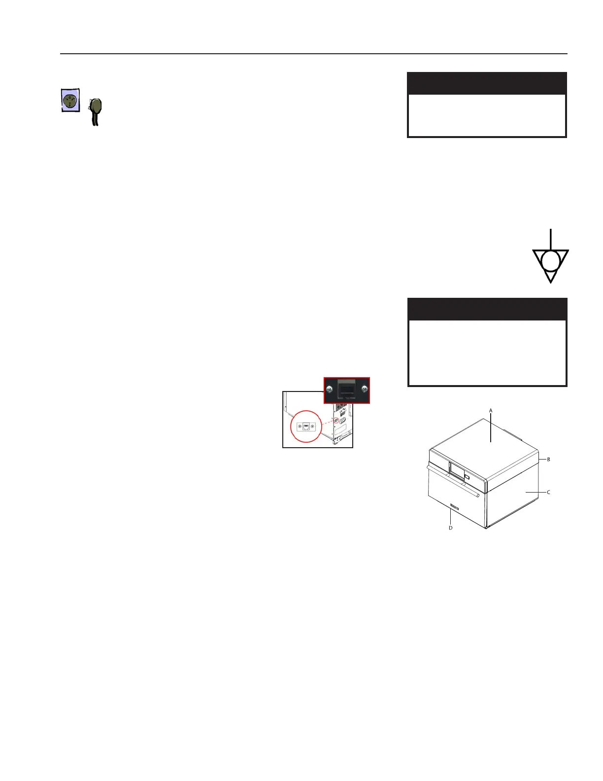 to earthing prong on plug� Located on outside of oven back, terminal is marked with symbol shown at right