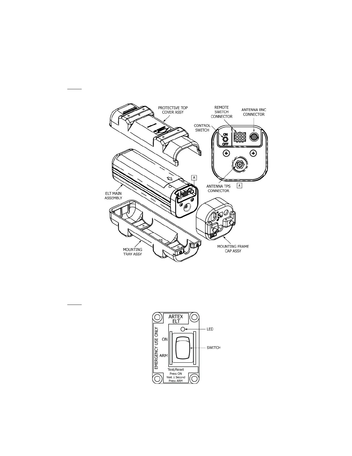 2) The cockpit-mounted remote switch assembly is comprised of an ELT status LED and control switch