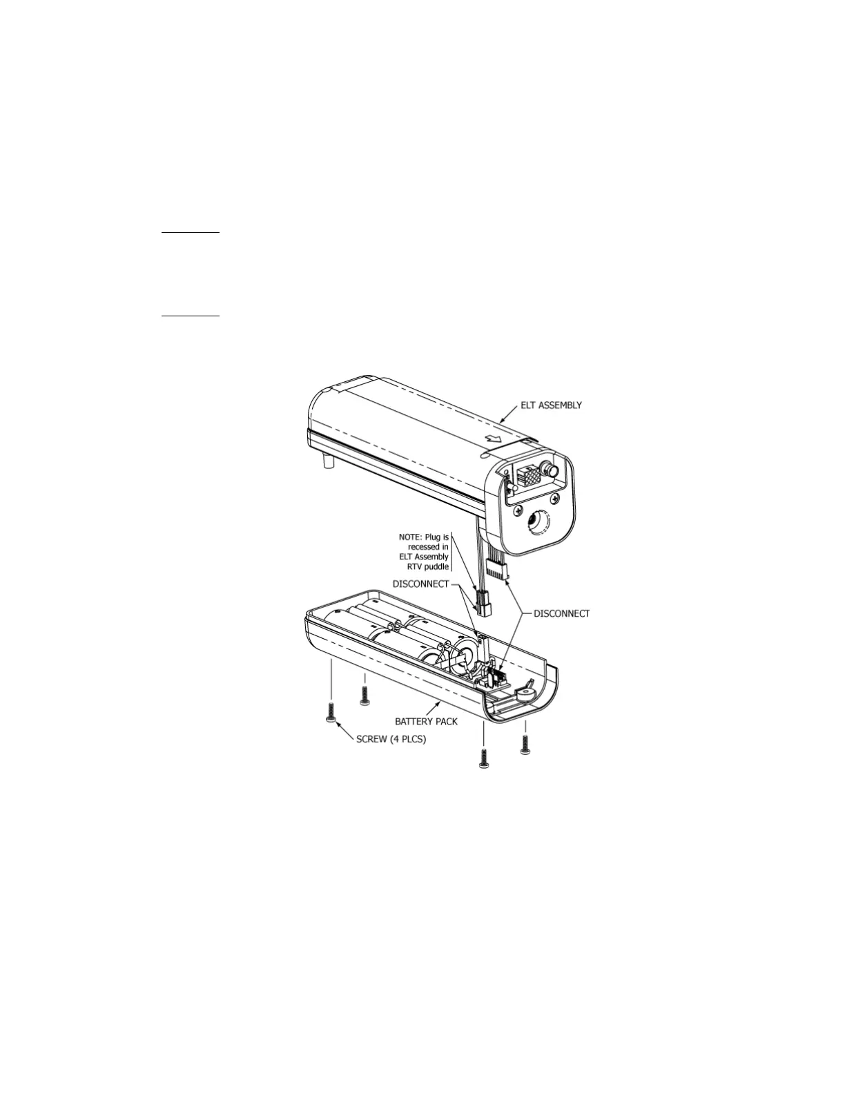 5) Separate the battery pack from the ELT, taking care not to put strain on the short interconnect