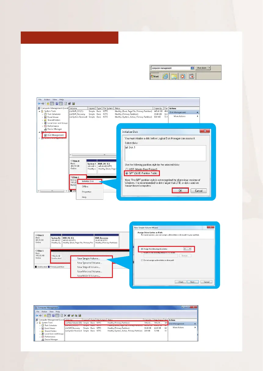 2. Select “Disk Management”, right-click on a disk title and select “Initialize