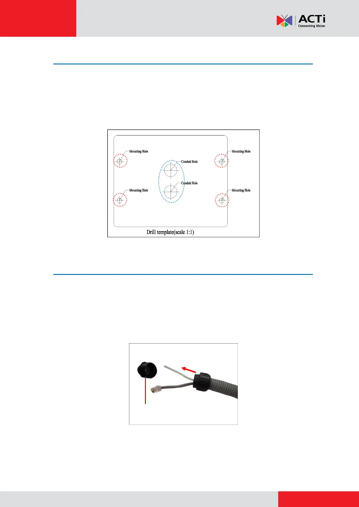 NOTE: Only a power cable fits through the conduit hole of the junction box; thus the