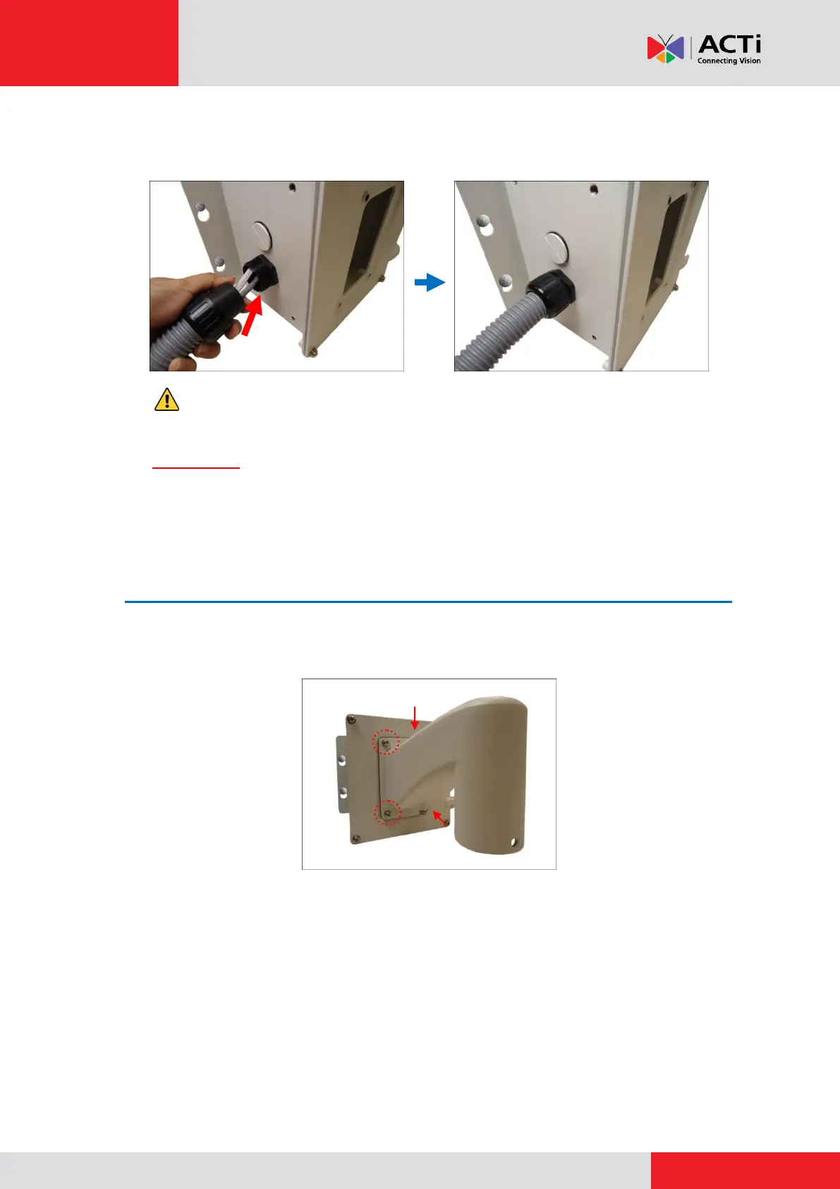 CAUTION: Make sure the clamping nut is securely attached to the conduit gland body