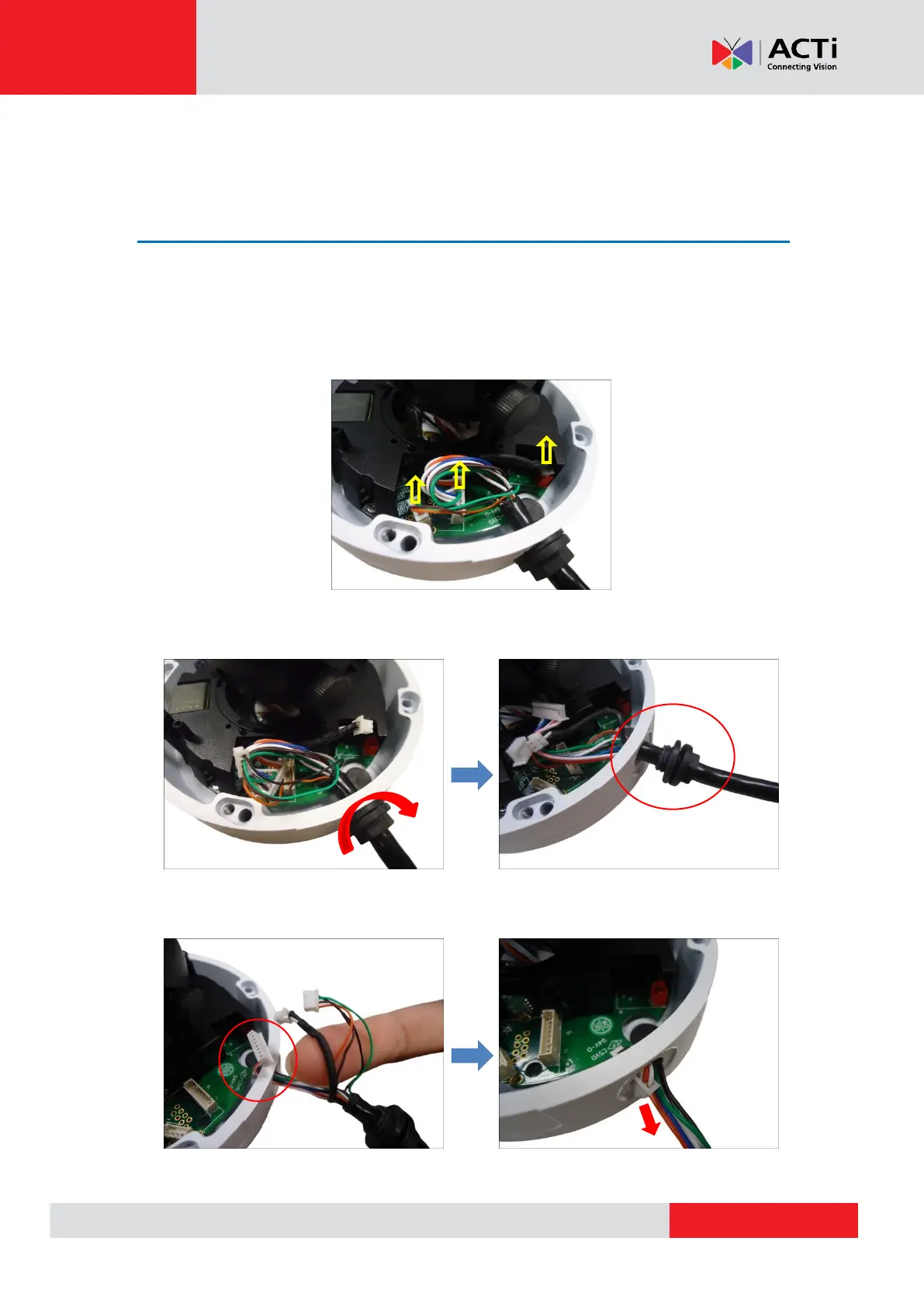 cable to go out from the bottom cable hole of the camera, follow the procedures below to do so.