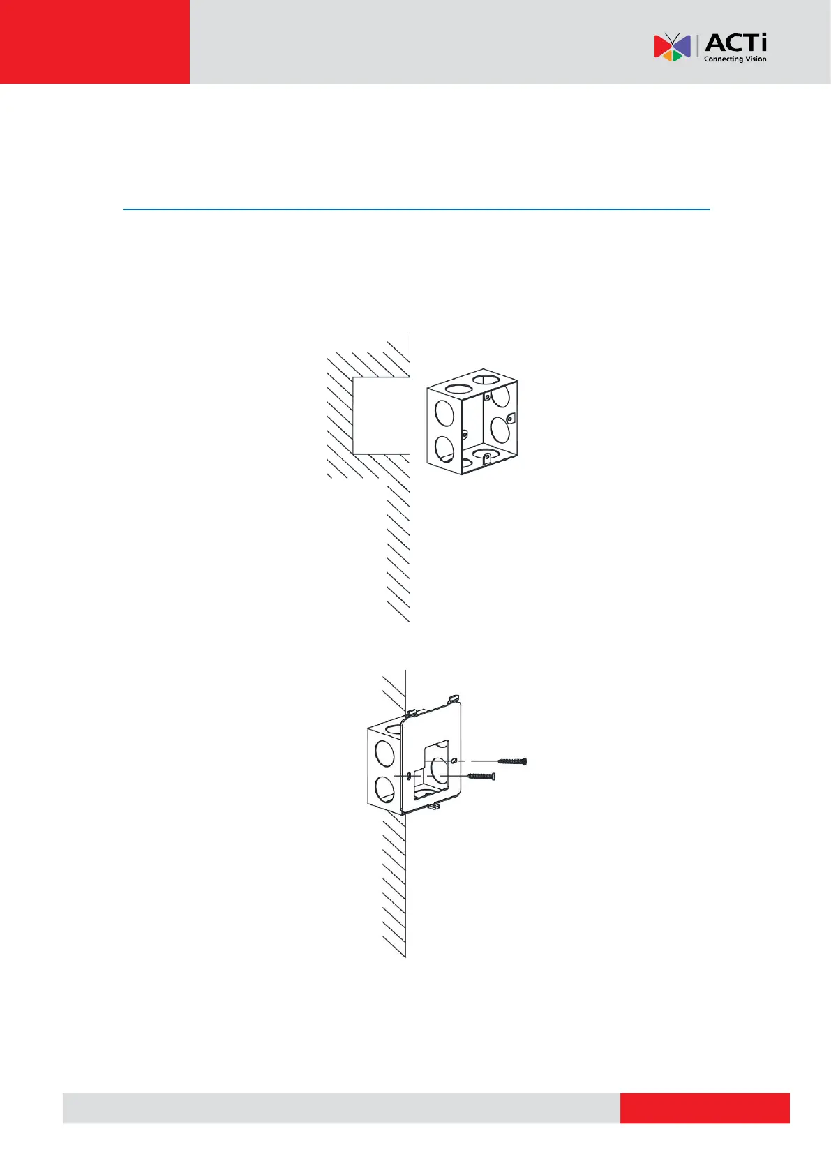 2. Secure the device mounting plate on the gang box using the two (2) supplied screws.