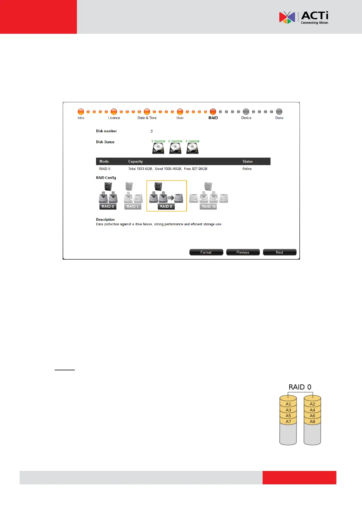 ACTi Standalone NVR servers support 4 different RAID types (0, 1, 5, 10). Depending on the