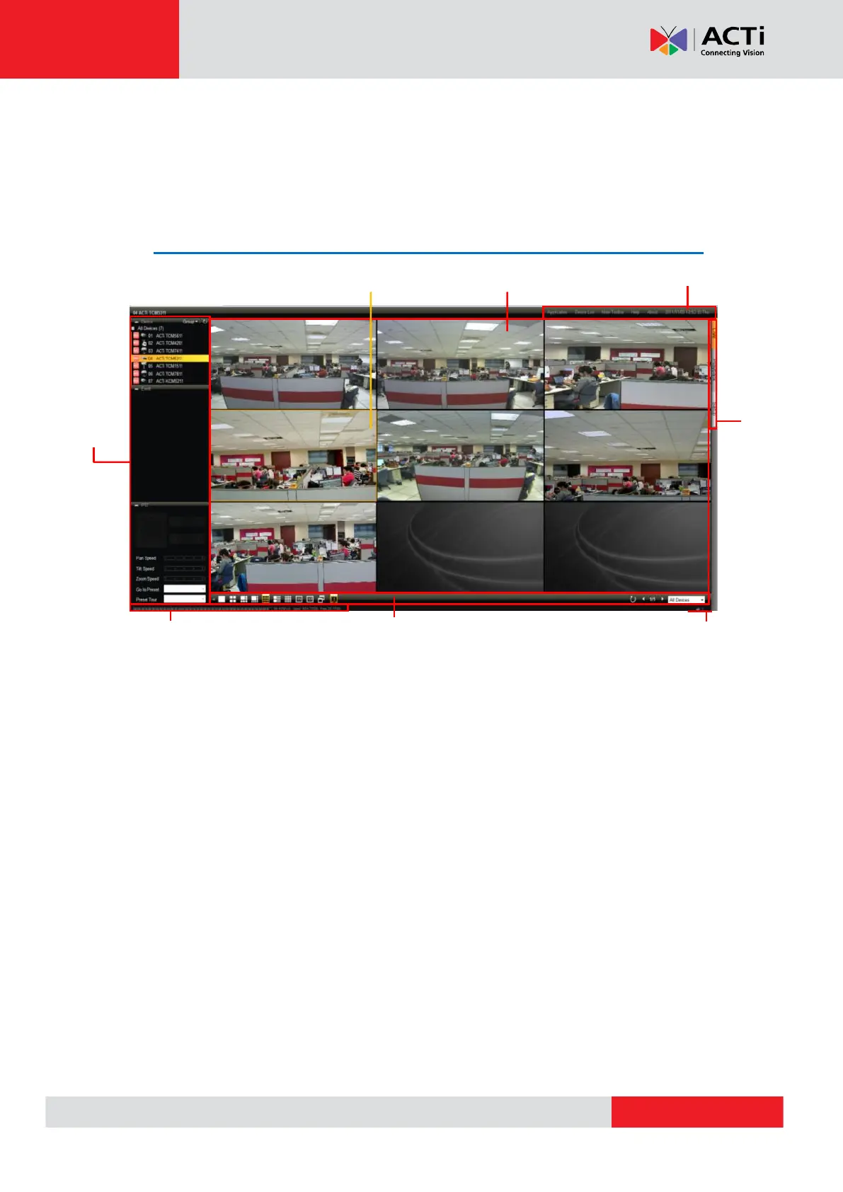 3. Tool Bar: This bar provides access to functions including “Application”, “Device List”,