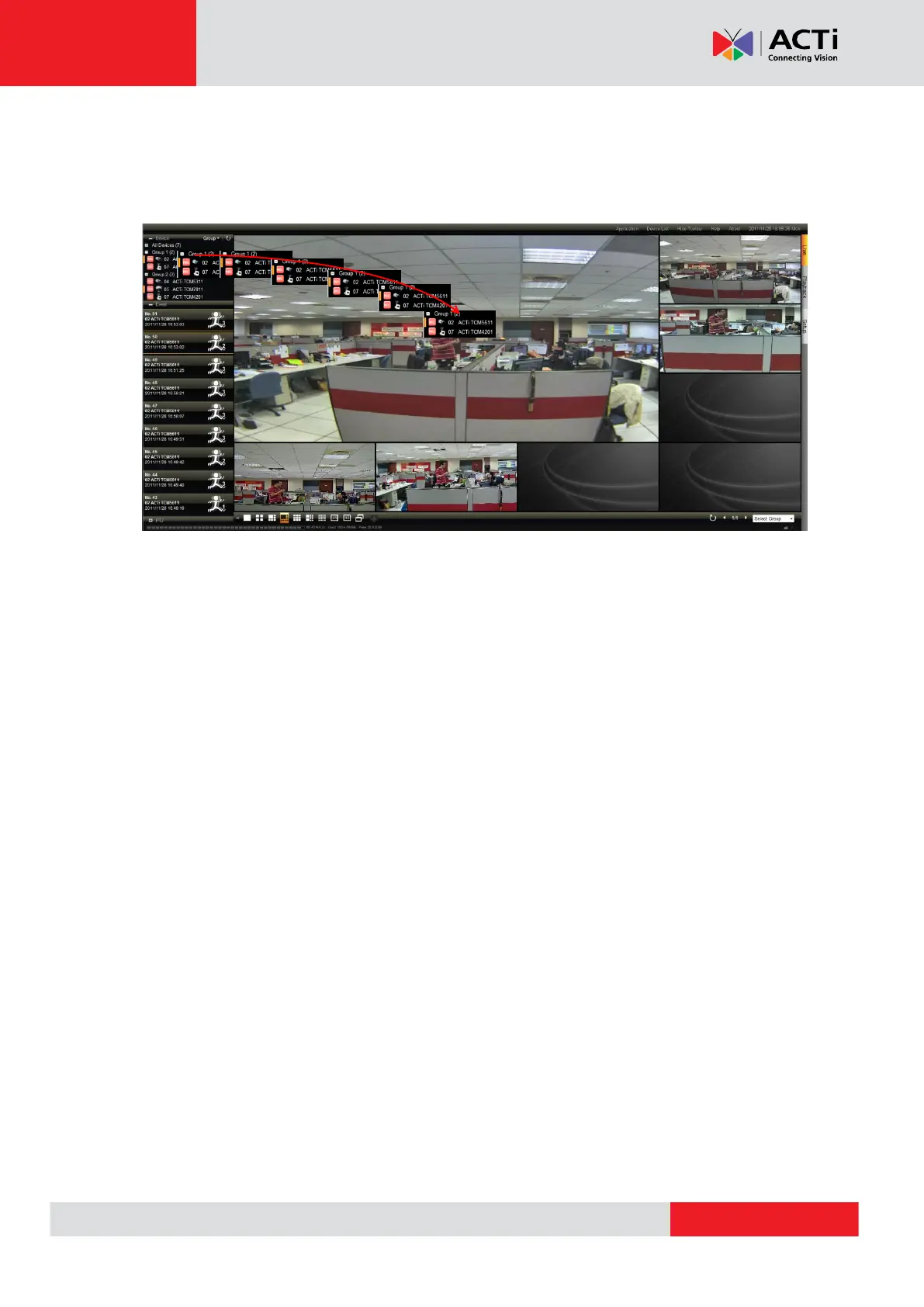 entire group of cameras to the “Live View”. You may click and drag a single channel onto the