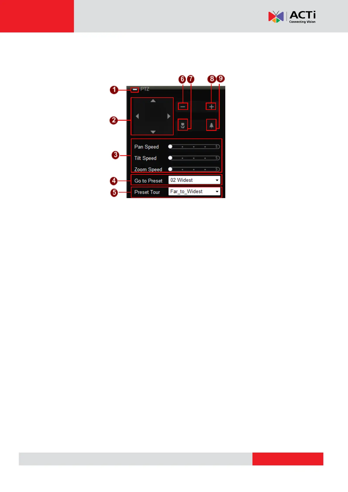 The PTZ Panel allows you to control camera motion for Pan / Tilt / Zoom enabled cameras.