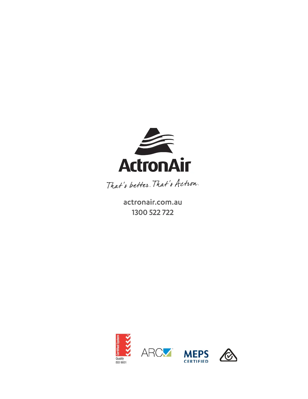 ActronAir is constantly seeking ways to improve the design of its products. Therefore, specifications are subject to change without notice.