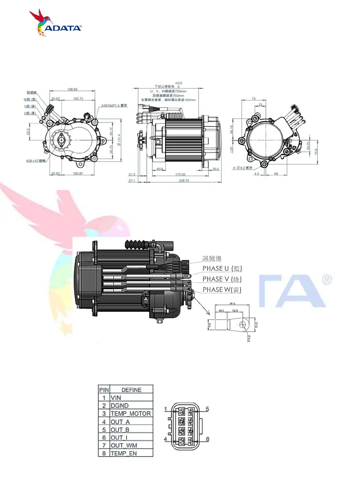 三相線定義如下:U(藍)、V(綠)、W(黃)